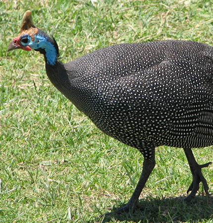 Este o pasăre mare (53-58cm), cu corp rotund și cap mic. Cântăresc în medie 1,3 kg. Penajul corpului este gri-închis cu pete mici albe, în vreme ce capul este lipsit de pene.